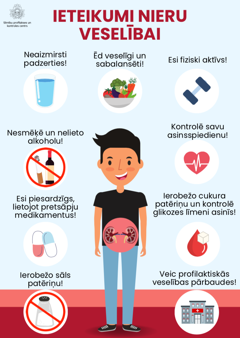 Šogad, atzīmējot Pasaules nieru dienu, Slimību profilakses un kontroles centra (SPKC) speciālisti ir izstrādājuši infografiku “Ieteikumi nieru veselībai”.