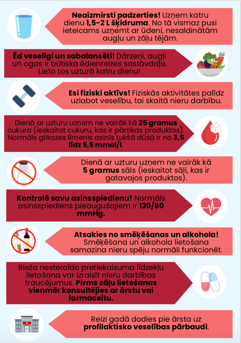 Aktualizējot tēmu, aicinām iepazīties arī ar citiem informatīviem materiāliem nieru veselību veicinošu paradumu veidošanai: