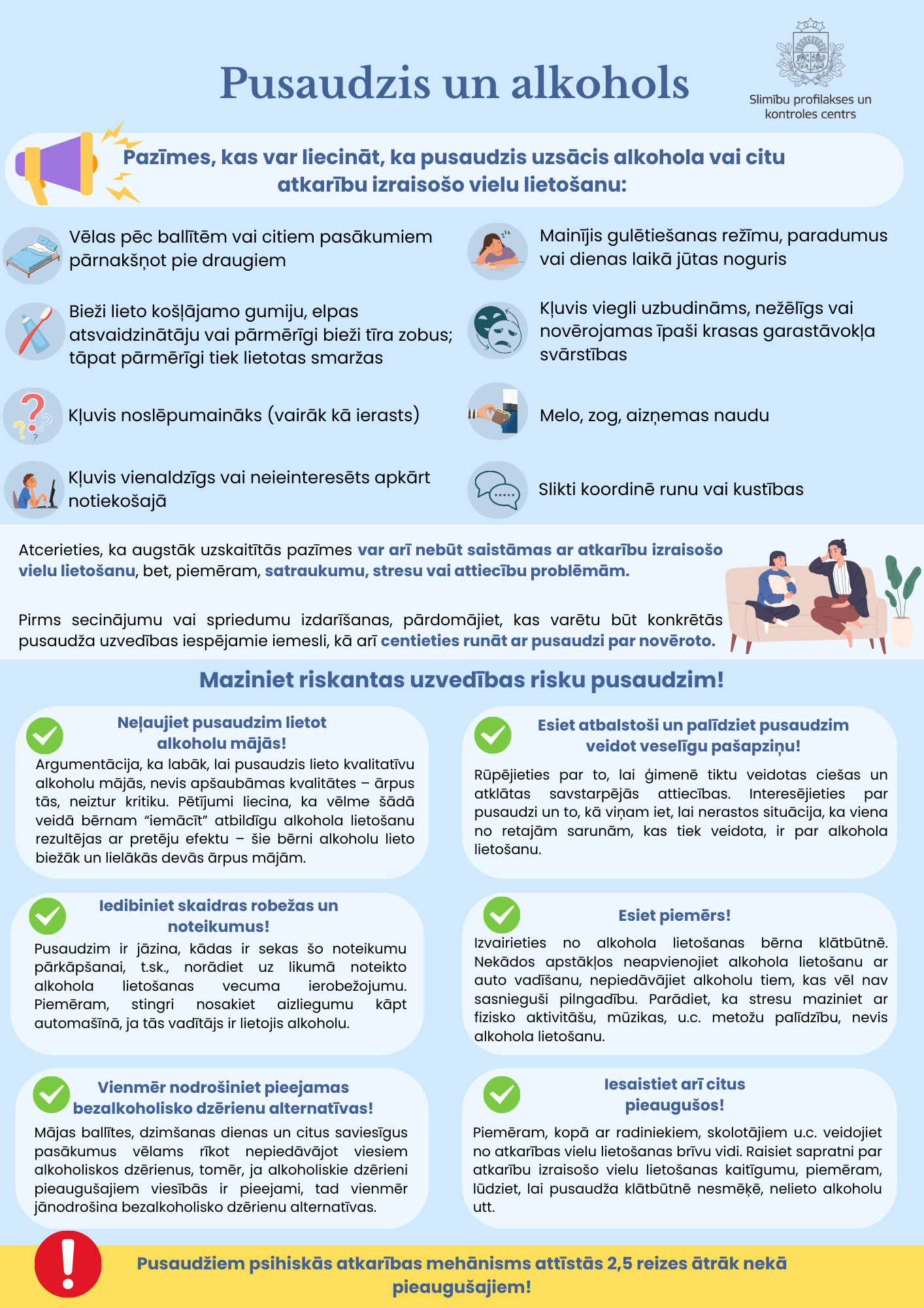 👉🏻 Pasaules dienas bez alkohola ietvaros SPKC speciālisti ir izstrādājuši informatīvo materiālu pusaudžu vecākiem «Pusaudzis un alkohols».