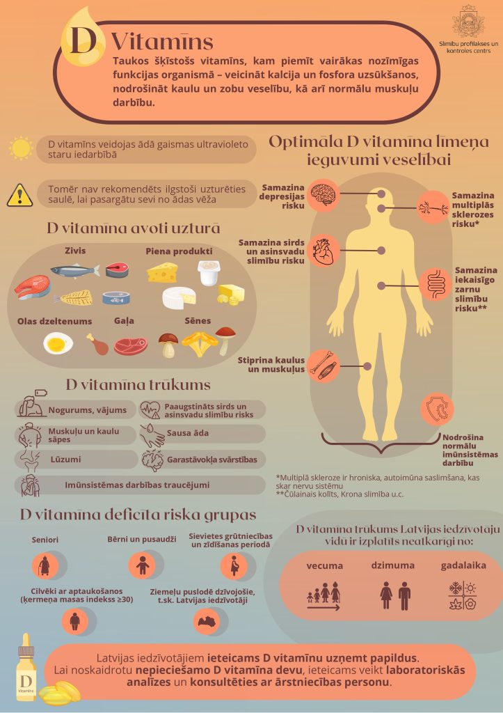 📍Aicinām iepazīties ar Slimību profilakses un kontroles centra izstrādāto infografiku “D vitamīns”.