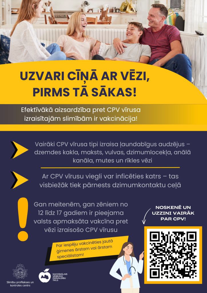 Šogad SPKC speciālisti ir sagatavojuši plakātu “Uzvari cīņā ar vēzi, pirms tā sākas” , lai atgādinātu iedzīvotājiem par CPV infekciju, iespējamajām saslimšanām un profilakses pasākumiem.