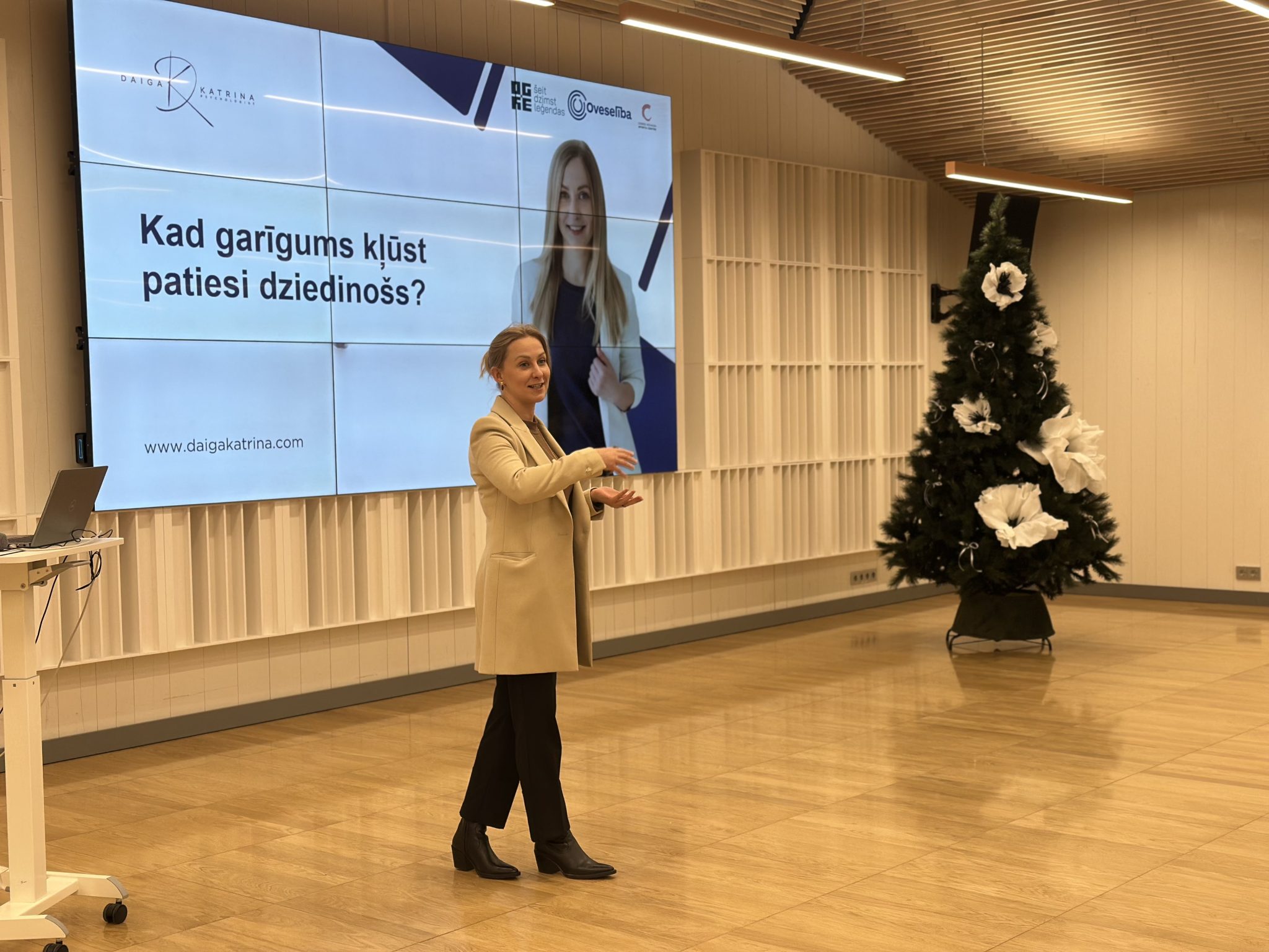 Daiga Katrīna Bitēna, klīniskā un veselības psiholoģe, stāstīja par garīguma nozīmi līdzsvara, pašpieņemšanas un iekšējās stabilitātes veidošanā. Galvenā doma – garīgajām praksēm ir jāpalīdz mums nonākt tuvāk sev, nevis radītu ilūziju vai kalpotu par veidu kā bēgt no realitātes. Garīgumam ir spēks gan celt, gan nemanāmi novērst uzmanību no būtiskā, kas vajadzīgs, lai dziedinātos. Garīgums kļūst patiesi dziedinošs tad, kad cilvēks tam pievēršas ar motivāciju izprast sevi un savu realitāti, nevis lai izvairītos no ikdienas grūtībām: tas savieno un iekļauj, nevis šķeļ un atdala; tas sniedz balstu realitātē, nevis aizstāj to vai piedāvā īslaicīgu atkāpi; tas palīdz emocionāli nobriest, nevis sola tūlītēju glābiņu.
