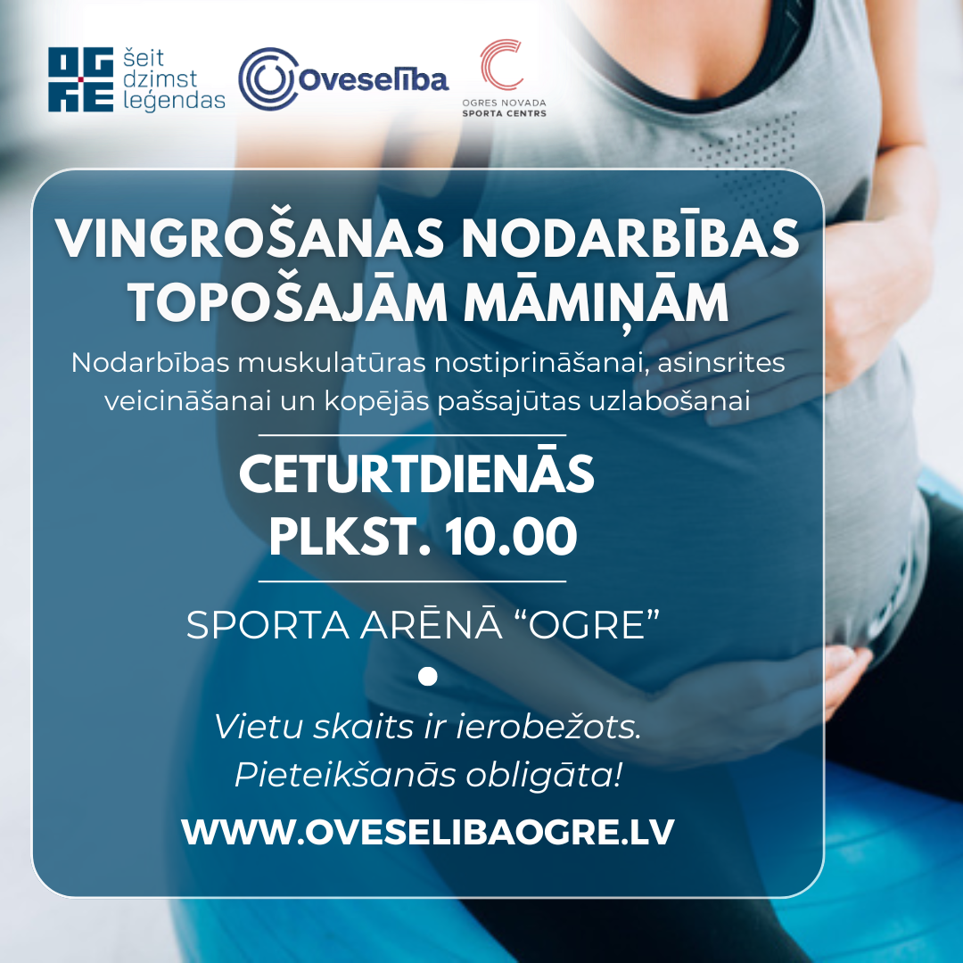 Oveselība aicina topošās māmiņas pievienoties bezmaksas vingrošanas nodarbībām ceturtdienās plkst. 10.00 Sporta arēnā “Ogre”. 📌Topošo māmiņu vingrošanas nodarbību mērķis ir: uzlabot stāju, asinsriti un vielmaiņu; palielināt muskuļu spēku; veicināt skābekļa apriti savā un mazuļa organismā. 📌Papildu ieguvums no šīm nodarbībām – regulāra vingrošana grūtniecības laikā palīdz labāk sagatavot ķermeni dzemdībām un ātrāk atgūt formu pēc dzemdībām. ✅ Sākot ar 22.augustu nodarbības notiks katru ceturtdienu plkst.10.00 Sporta arēnā “Ogre”. ‼️ Nodarbības ir ieteicamas, sākot ar 14.grūtniecības nedēļu, un ir piemērotas līdz pat grūtniecības noslēgumam – dzemdībām. 👇🏻AICINĀM AIZPILDĪT SAVU PIETEIKUMU ZEMĀK: (Ja Jums piedāvā iespēju aizpildīt pieteikumu, tad pieteikumu nosūtot, Jūsu dalība pasākumā automātiski tiek aptiprināta. Taču, ja pieteikšanās opcija nav aktīva, tas nozīmē, ka dalībnieku grupa ir nokomplektēta un pieteikšanās ir slēgta.)