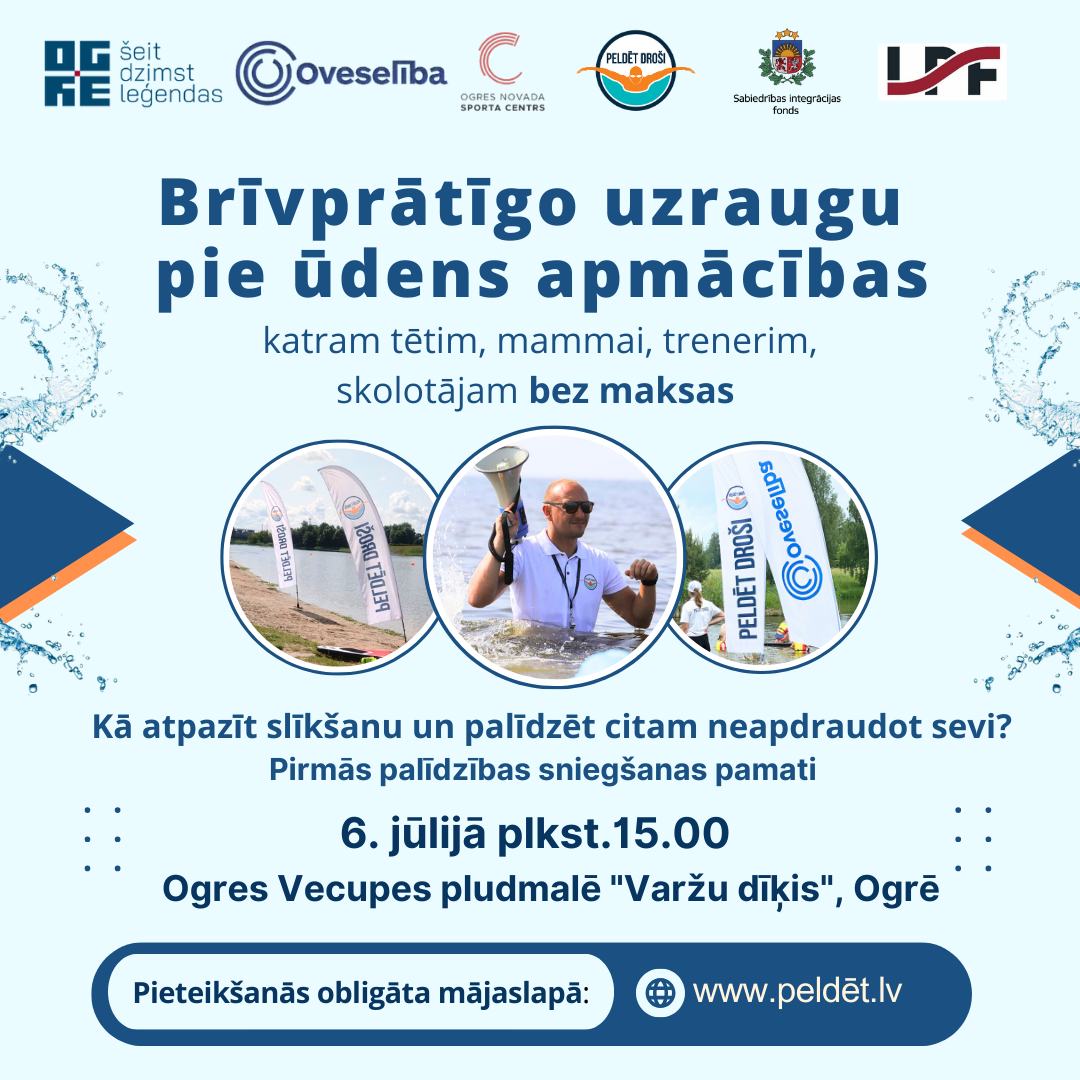 Brīvprātīgo uzraugu pie ūdens apmācības | 6.jūlijā Ogrē | Peldēt droši