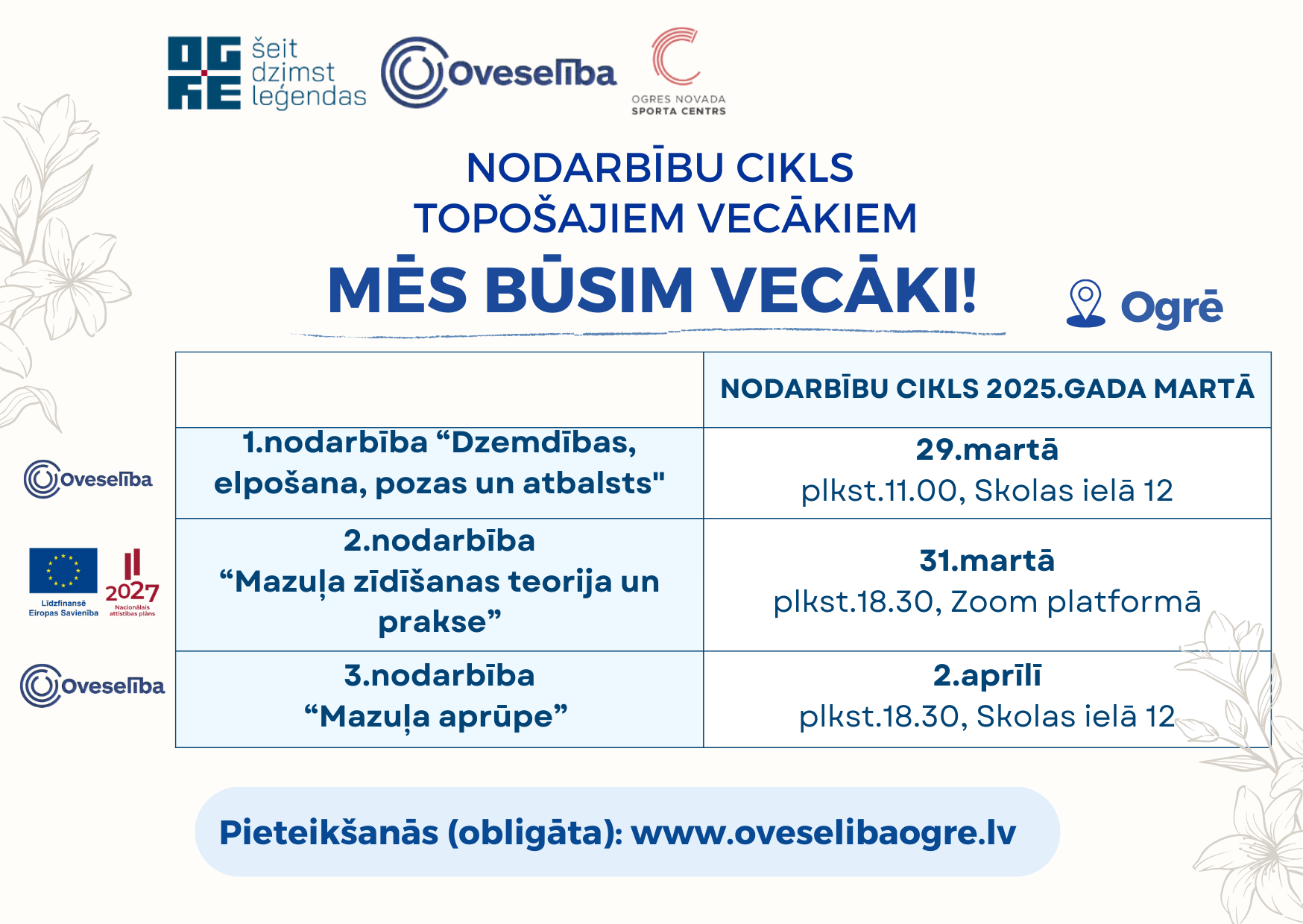 Oveselība aicina pieteikties topošos vecākus bezmaksas nodarbību ciklam “Mēs būsim vecāki” 2025.gada martā!