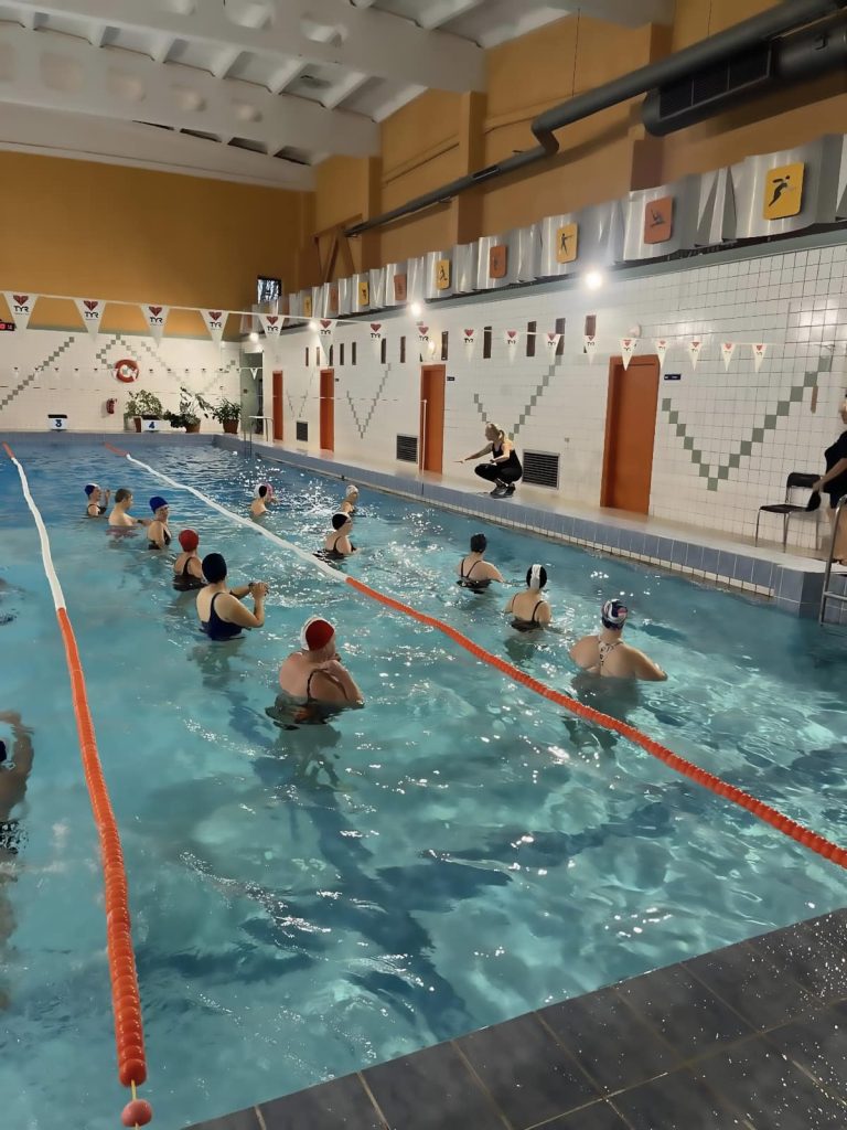 Nūjošanas pargajienu cikla “Iepazīsti Ogres novadu!” dalībnieki, kuri izgājuši visus šis sezonas 5 pārgājienus, izmanto savu galveno balvu – bezmaksas vingrošanas nodarbību ūdenī apmeklējums, un turpina but aktīvi! ![]()