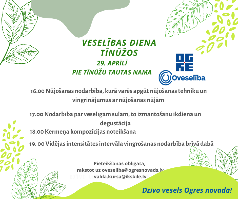 Veselība ir dārgākais kas mums ir, un mūsu katra paša ziņā ir par to parūpēties. Aicinām uzturēt vai ieviest jaunus, veselīgus ieradumus savā ikdienā, gūstot idejas Veselības dienā Tīnūžos.