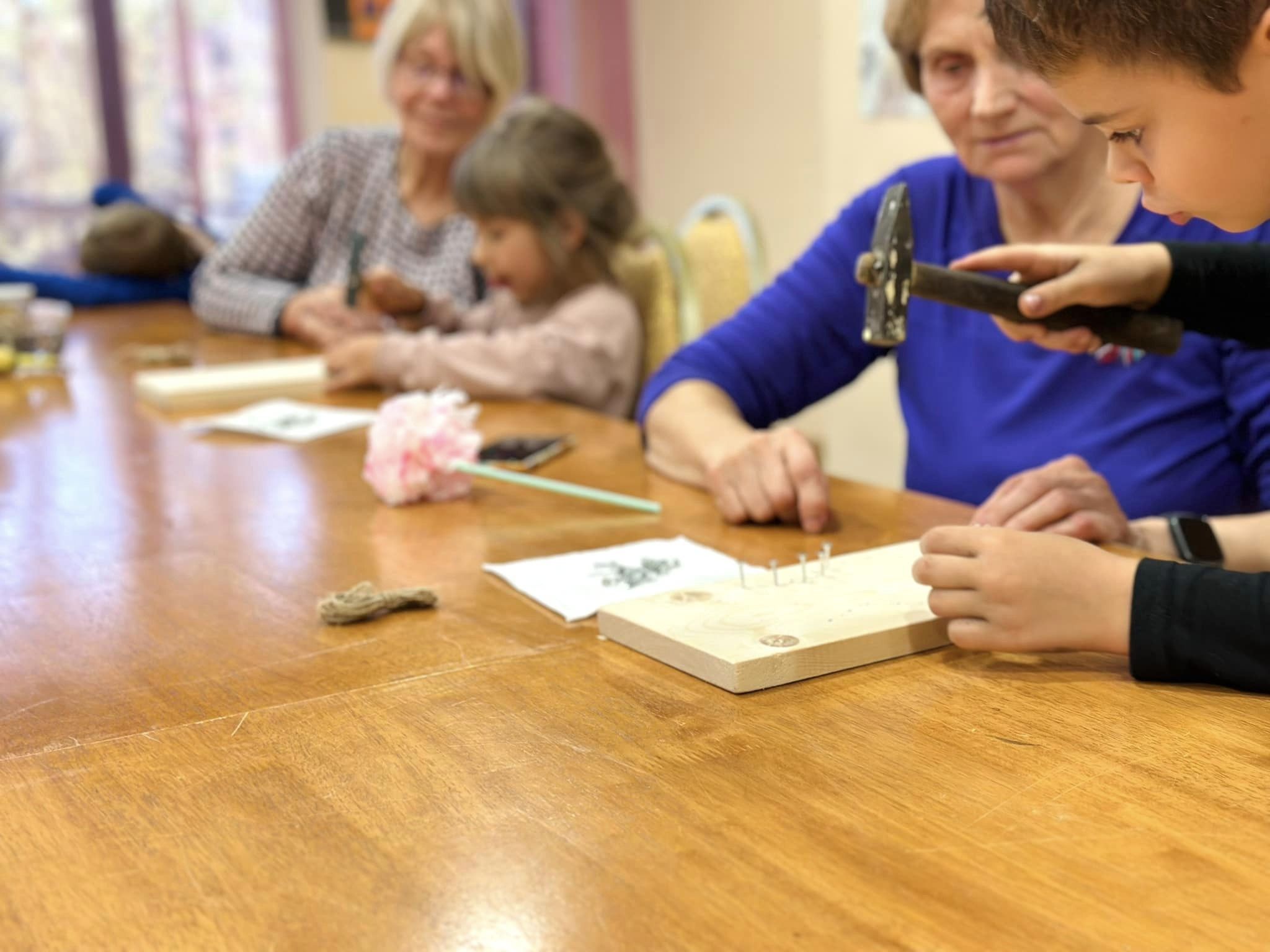 Nometni iesākām ar iepazīšanos, kur katrs pastāstīja par kādu vecvecāku un mazbērnu kopīgi piedzīvotu notikumu, kas īpaši palicis atmiņā. Šī bija lieliska iespēja iedvesmoties un pasmelties pa idejai kā var pavadīt brīvo laiku kopā! Tālāk nometnes dalībnieki devās uz mūzikas terapijas sesiju, kuras laikā veicināja sadarbības un saziņas prasmes, emociju izpausmes, kā arī pašizpausmes un radošuma attīstību. Savukārt pēcpusdienā aktīvi darbojās radošajās darbnīcās, kur tapa interesanti pašu darinātie radošie darbiņi.
