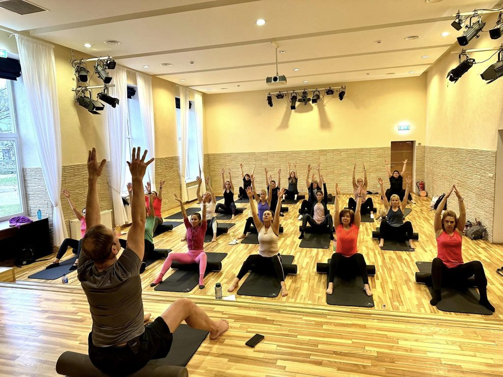 Profesionālu treneru vadībā dalībnieki piedalījās dažādas intensitātes fizisko aktivitāšu nodarbībās:
