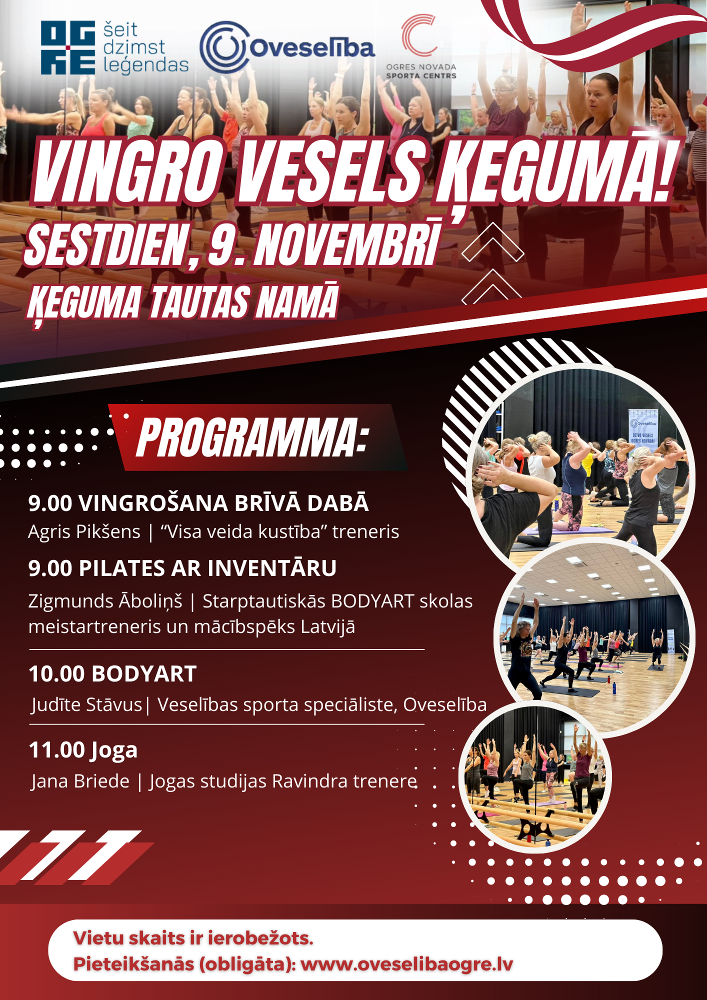 📌Pasākums “Vingro vesels Ogrē!” ir bezmaksas, iepriekš piesakoties. Pieteikšanās ir obligāta! VIETU SKAITS IR IEROBEŽOTS.