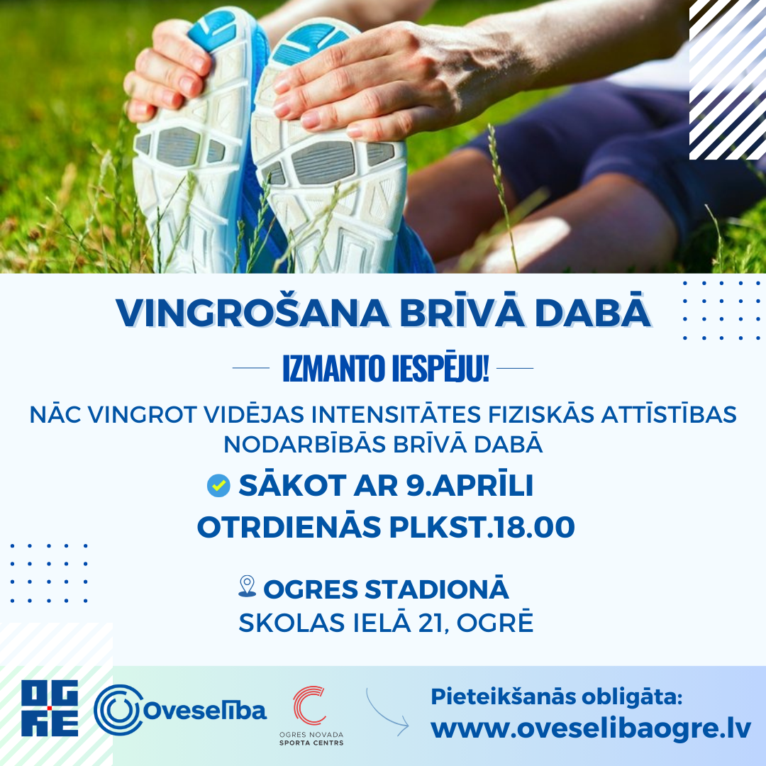 ✅Sākot ar 9. aprīli otrdienās plkst. 18.00 aicinām uz vidējas intensitātes fiziskās attīstības nodarbībām brīvā dabā vingrot gribētājus darbspējīgā vecumā (nodarbības nav piemērotas senioriem un cilvēkiem, kam bijušas nopietnas operācijas gūžās, muguras daļā u.c.).