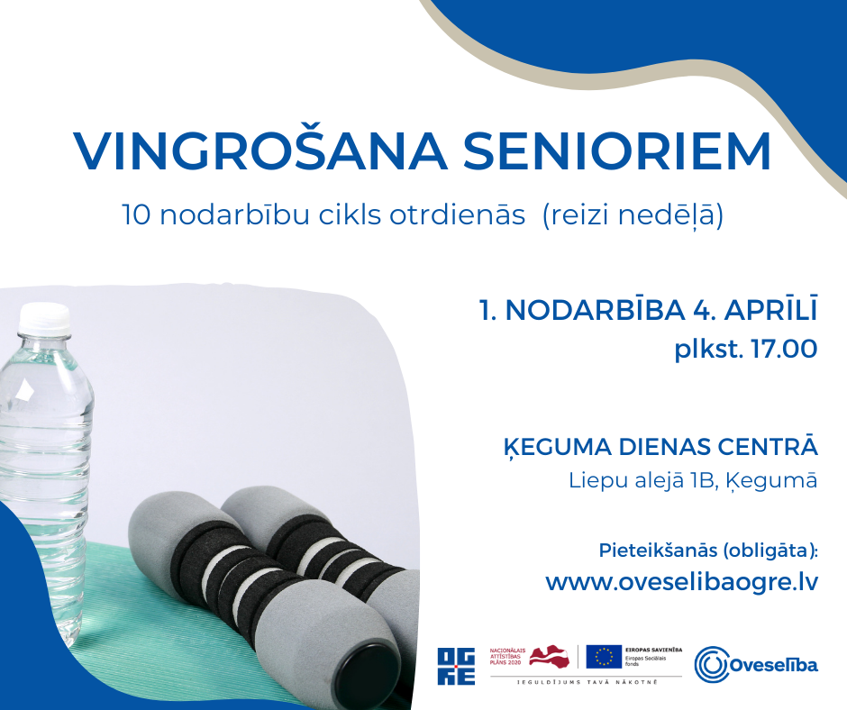 Nodarbības notiks no 4.aprīļa otrdienās Ķeguma Dienas centrā plkst. 17.00.