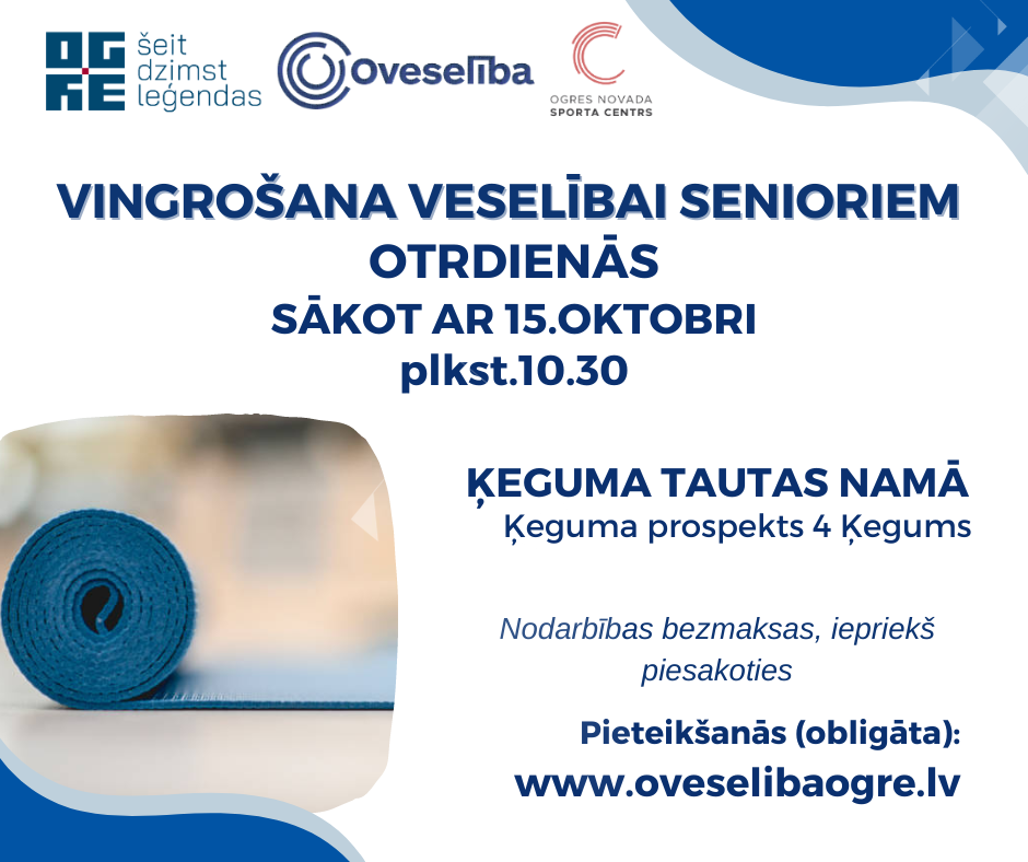 Oveselība aicina uz vingrošanu veselībai seniorus sākot ar 15.oktobri otrdienās plkst.10.30 Ķeguma Tautas namā.