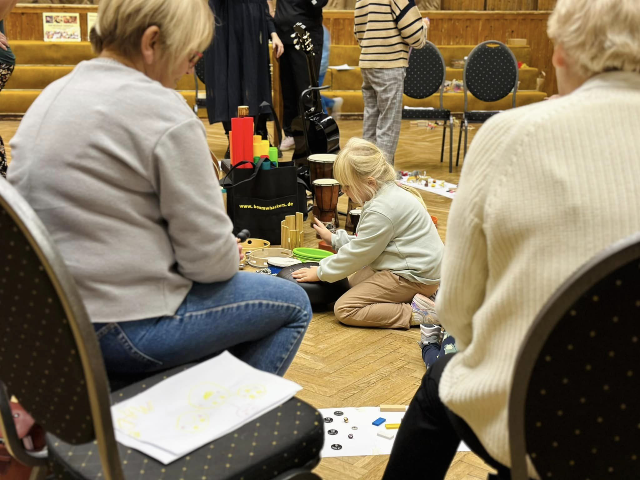 Nometni iesākām ar iepazīšanos, kur katrs pastāstīja par kādu vecvecāku un mazbērnu kopīgi piedzīvotu notikumu, kas īpaši palicis atmiņā. Šī bija lieliska iespēja iedvesmoties un pasmelties pa idejai kā var pavadīt brīvo laiku kopā! Tālāk nometnes dalībnieki devās uz mūzikas terapijas sesiju, kuras laikā veicināja sadarbības un saziņas prasmes, emociju izpausmes, kā arī pašizpausmes un radošuma attīstību. Savukārt pēcpusdienā aktīvi darbojās radošajās darbnīcās, kur tapa interesanti pašu darinātie radošie darbiņi.